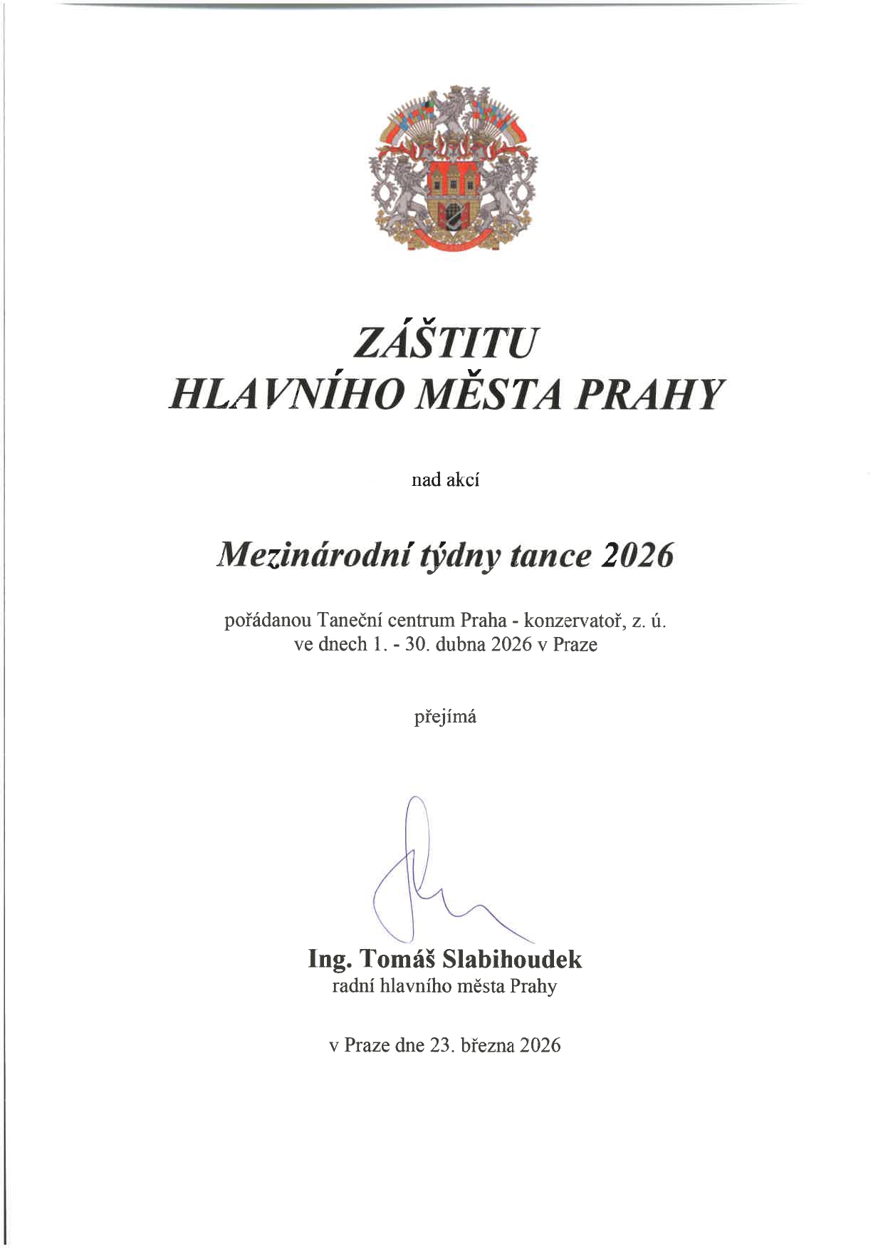 GALA Mezinárodních týdnů tance 2026, 26. 04. 2026 od 19:00, Divadlo na Vinohradech