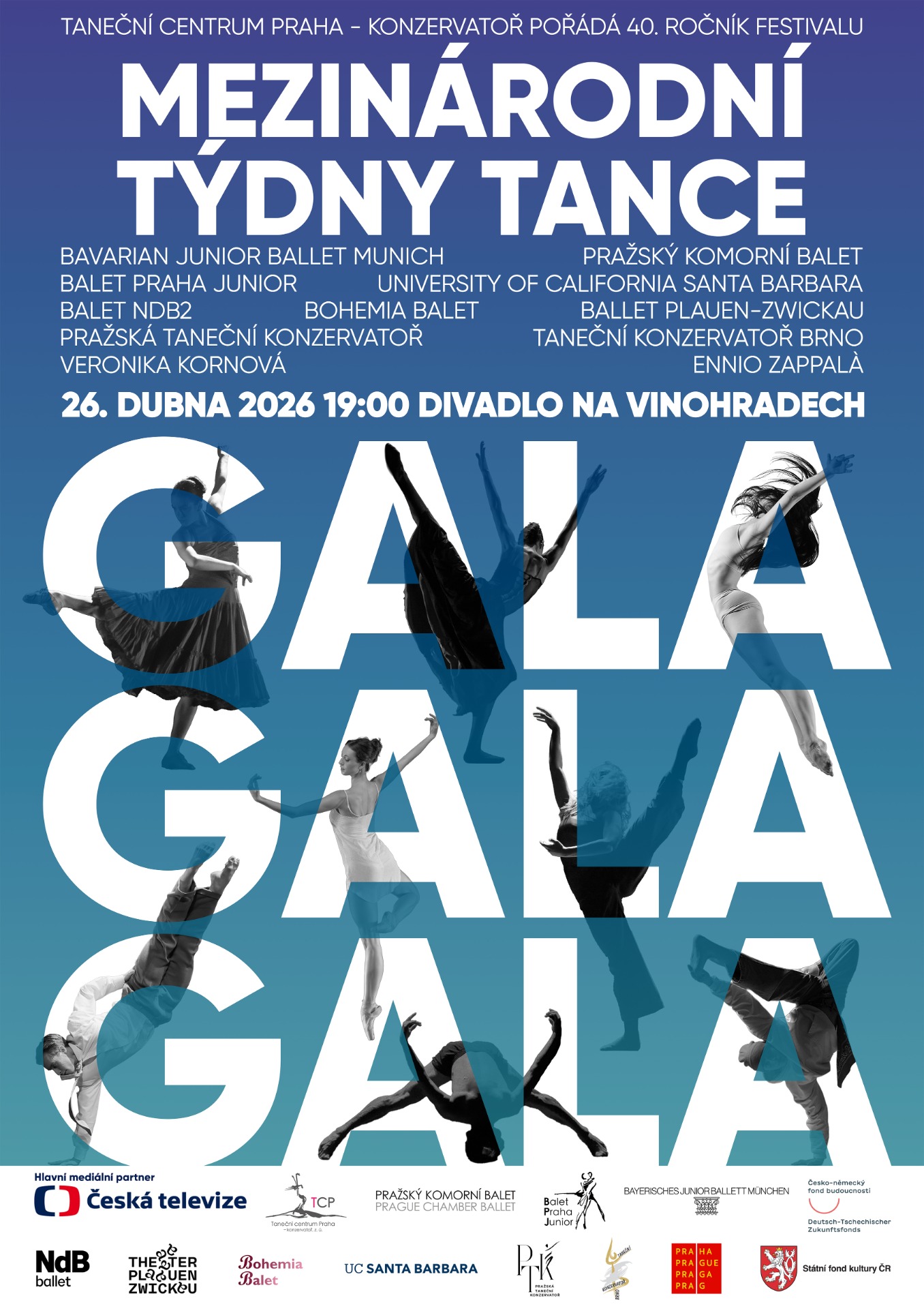 Letošní jubilejní 40. ročník festivalu Mezinárodní týdny tance ve svém programu nabídne také tradiční Gala MTT. Dramaturgický záměr konzervatoře Taneční centrum Praha je stabilní: prezentovat vývoj tanečního divadla prostřednictvím repertoáru profesionálních souborů, ale i juniorských těles složených z čerstvých absolventů, nebo dokonce ještě studentů konzervatoří.